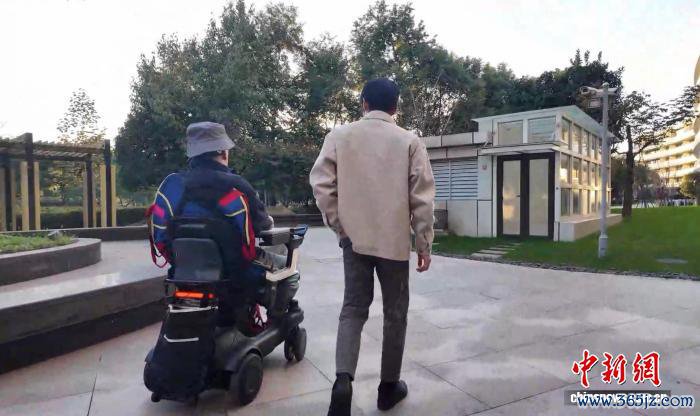 又名高位截瘫患者(左)通过脑机接口系统驱动电动轮椅。(中国科学院脑科学与智能时间不凡立异中心供图)
